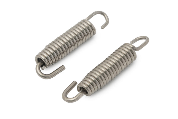 We stock two different types of exhaust springs, our standard exhaust springs are direct replacements for the OEM exhaust springs and we also offer a swivel end exhaust spring which allows for better fitment. Both our standard and swivel exhaust springs are manufactured from steel with an anti corrosion coating.
