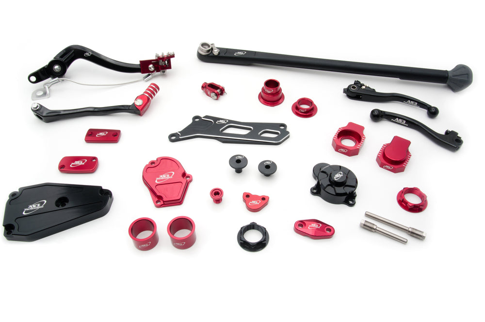Sometimes it’s the little things that mean the most. Whether your goal is to save weight or create a custom look, our AS3 anodised chain adjusters, steering stem nuts, and axle blocks (available in black and red) are designed not only to enhance appearances, but to improve the functionality of the factory parts. For example, our AS3 wheel spacers (both front and rear) have been engineered with an additional outer lip to further prevent dirt, dust, and grime from entering the wheel bearings and causing unnecessary wear.