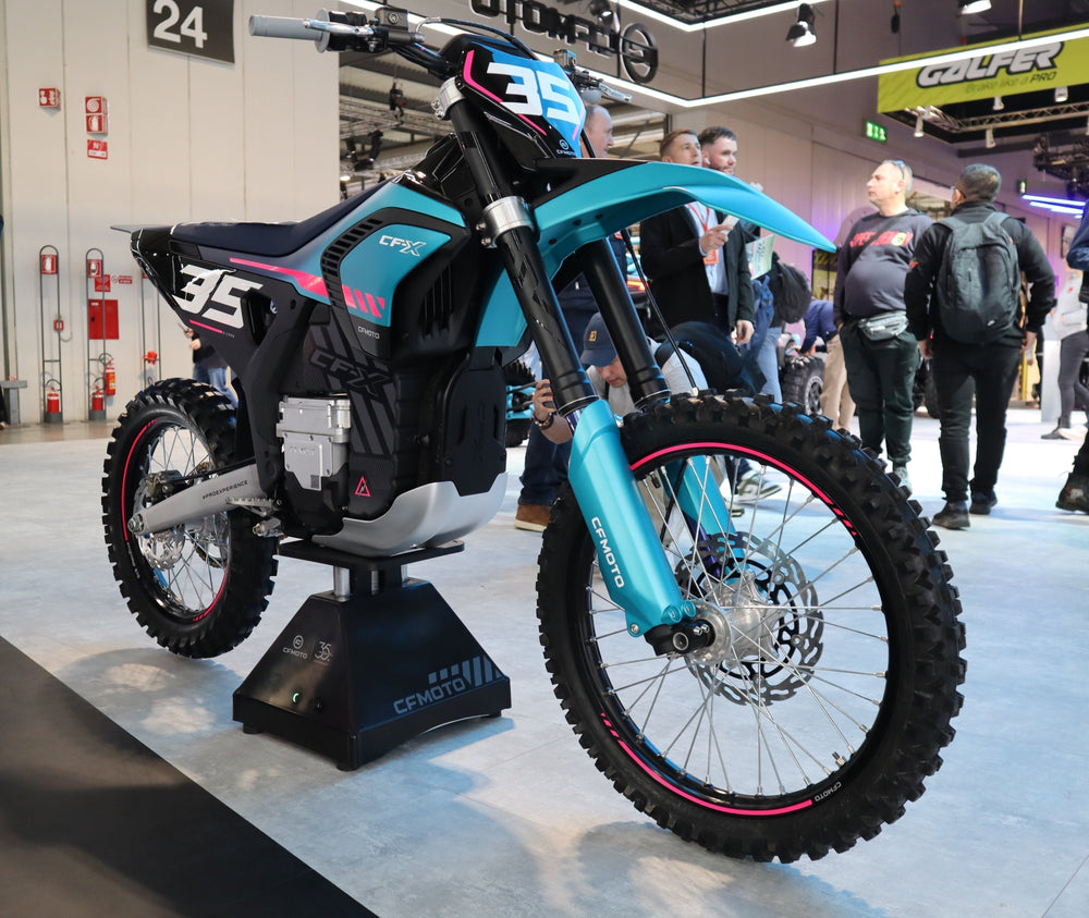 The CF-X Concept is an electric motocross bike which was unveiled for the first time at EICMA 2024. There isn't much information out there on the specs but it is said to be the equivalent to a 450cc internal combustion engine (ICE). Some of the CF-X Concepts's features include: it weighs 125kg, with a seat height of 960mm and come with adjustable WP suspension. There are 3 customisable ride modes, it has a rear-mounted liquid-cooled radiator and is powered by a 3-1 400V drive system.