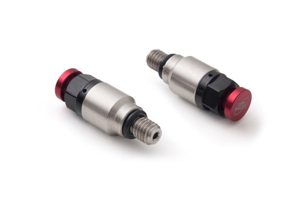 Over time air builds up in the front forks of the bike, for the suspension to function correctly this air needs bleeding out which can often be tricky using the standard bleeder screws. AS3 Performance fork air bleeder valves make bleeding the forks quick and easy with the push of a button, it can even be done trackside.