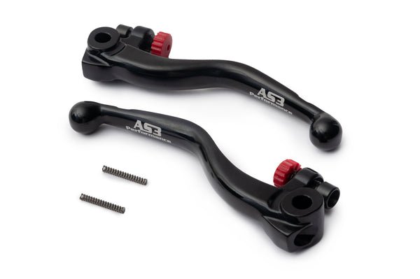AS3 Performance front brake and clutch levers are supplied as a pair and are come in black anodised finish. The levers are forged from aluminium and will not snap as easily as cast OEM levers. We stock front brake and clutch levers for most manufacturers including Yamaha, Beta, KTM, Suzuki and more.
