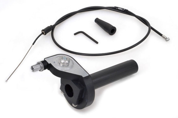 We stock twist grip conversion kits for a selection of Yamaha, Kawasaki and Suzuki quad bikes. The twist grip option is often preferred over the thumb throttle by many riders as it gives you more feel and control. Our twist grip conversion kit comes complete with the throttle cable and housing.