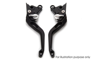 AS3 Performance adjustable front brake and clutch levers are available for a wide range of sports bikes, sports touring bikes and dual sport motorcycles. They are CNC machined from aircraft grade 6061 T6 aluminium and feature a short lever design to allow the rider to control the levers with either 2 or 3 fingers. The levers have 6 adjustable reach settings which can be easily set by using the silver adjuster. They come in a black anodised finish with AS3 Performance branding on the front of the levers.