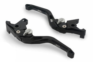 AS3 Performance adjustable front brake and clutch levers are available for a wide range of sports bikes, sports touring bikes and dual sport motorcycles. They are CNC machined from aircraft grade 6061 T6 aluminium and feature a short lever design to allow the rider to control the levers with either 2 or 3 fingers. The levers have 6 adjustable reach settings which can be easily set by using the silver adjuster. They come in a black anodised finish with AS3 Performance branding on the front of the levers.