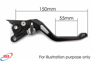 AS3 Performance adjustable front brake and clutch levers are available for a wide range of sports bikes, sports touring bikes and dual sport motorcycles. They are CNC machined from aircraft grade 6061 T6 aluminium and feature a short lever design to allow the rider to control the levers with either 2 or 3 fingers. The levers have 6 adjustable reach settings which can be easily set by using the silver adjuster. They come in a black anodised finish with AS3 Performance branding on the front of the levers.