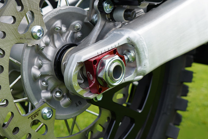 KAWASAKI KX 250 F 2017-2025 KX 450 F 2016-2025 AS3 CHAIN ADJUSTER REAR AXLE BLOCKS RED