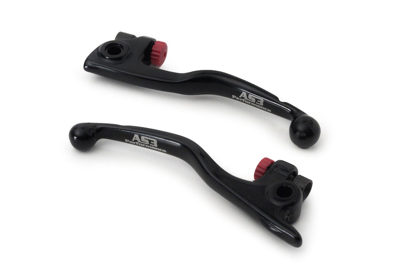 AS3 Performance front brake and clutch levers are direct replacements for the OEM levers. They are also cold forged which allows the levers to bend on impact rather than snapping like most OEM cast levers would. The levers are anodised in black and feature AS3 Performance branding.