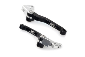 AS3 Performance flexible and adjustable front brake and clutch levers. Manufactured from high-strength aluminium, forged and then CNC machined to guarantee a long life service and a precise fit. The pivot design allows the levers to fold outwards on impact preventing them from breaking or bending. The levers are also have an adjustable reach allowing you to set them at a distance to suit the rider.