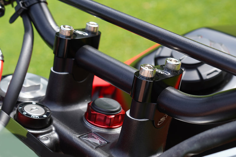 - Check when installing: Different clamps can require different length bolts depending on the thickness of the top part of the handlebar clamp. When installing the handlebar risers make sure the bolts are screwed in to the same depth as the OEM bolts that were removed