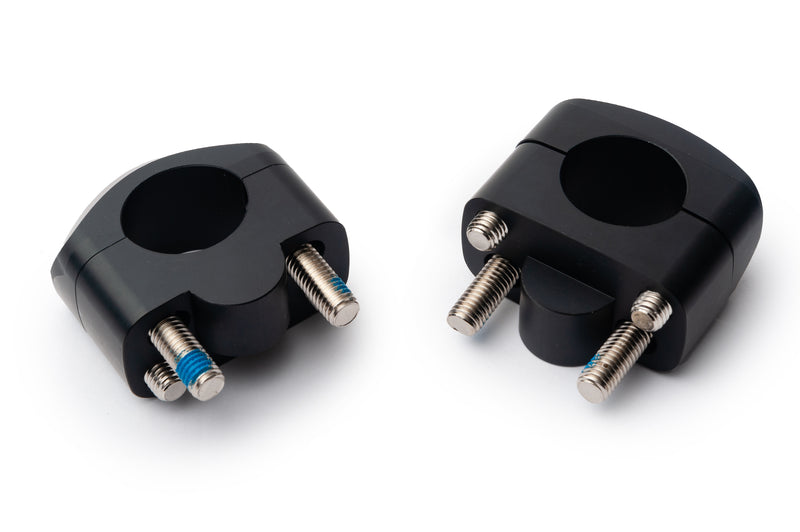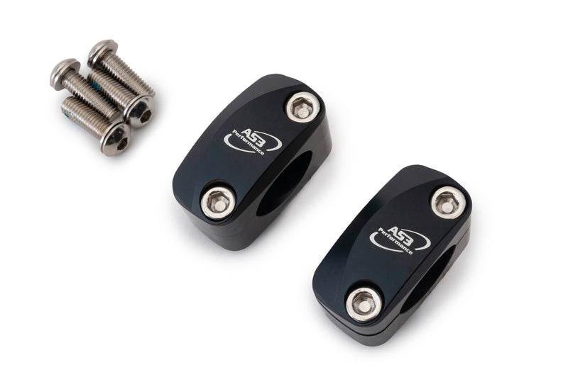 Convert your standard bars 22.2mm handlebars to 28.6mm fat bars with our AS3 Performance handlebar conversion clamps. The clamps are CNC machined from 6061-T6 billet aluminium and come in a matt anodised finish with AS3 Performance lazer etched logo on each clamp.