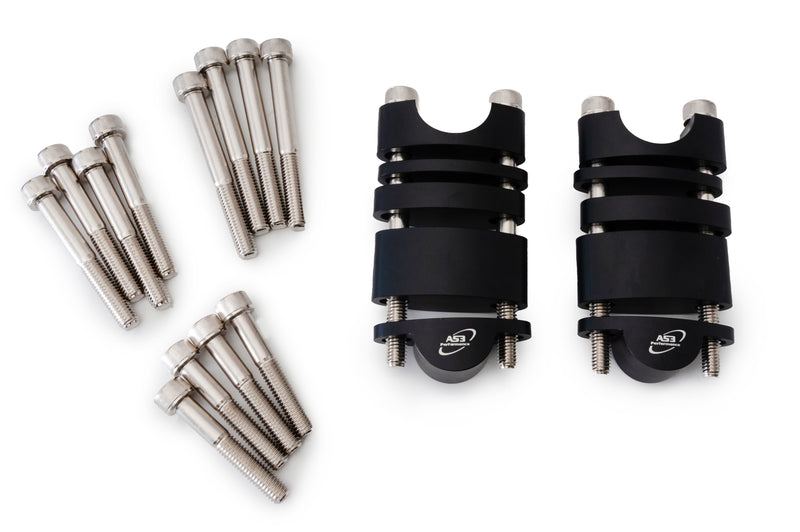 If you're looking to raise the height of the handlebars on your bike, our AS3 Performance bar riser kits are a quick and easy to install solution without having to replace the bar clamps. This kit come with 4 different sized spacers and longer bolts allowing you to raise the handlebars by 20mm-60mm.
