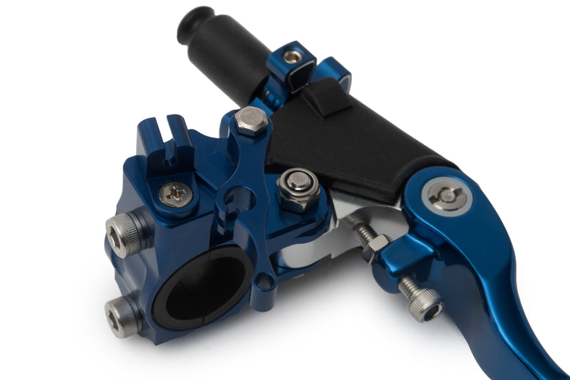 The AS3 Performance Factory Series blue clutch assembly is one of the most advanced off-road clutch assemblies on the market, it is designed to fit most off-road motorcycles and features a flexible pivot design to allow the lever to bend outwards on impact to help prevent it from breaking. The 'Quick Adjust' wheel allows you to quickly adjust the responsiveness of the clutch. It also has an adjustable reach setting, protective rubber boots and comes in an anodised finish with AS3 Performance branding. This assembly also includes a hot start lever which is mounted on the underside of the clamp.