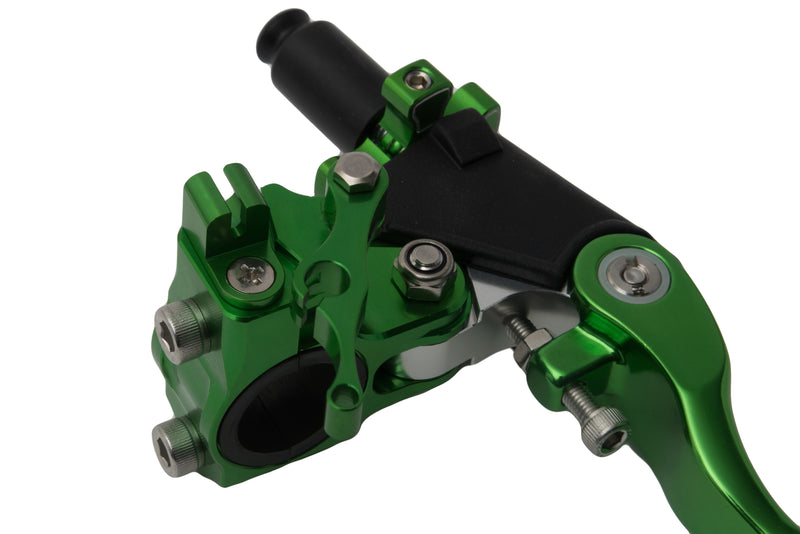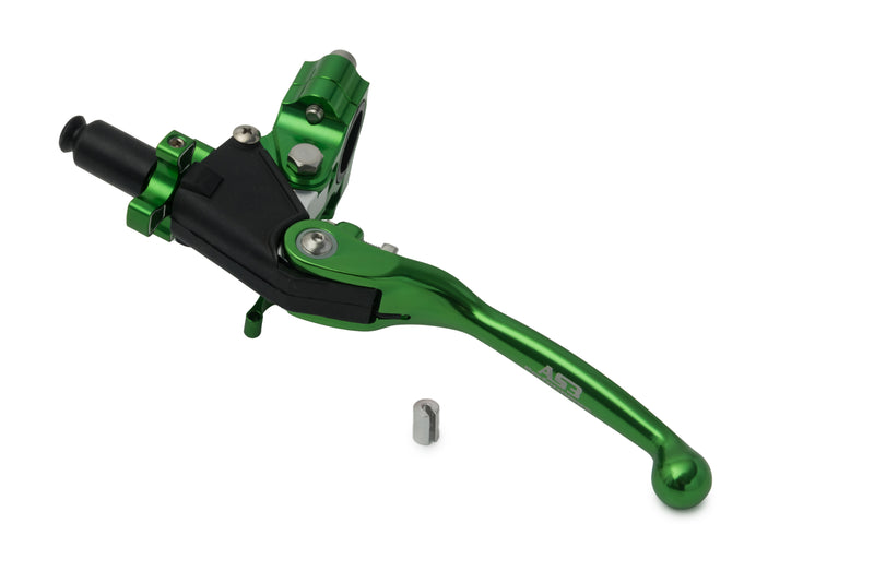 The AS3 Performance Factory Series green clutch assembly is one of the most advanced off-road clutch assemblies on the market, it is designed to fit most off-road motorcycles and features a flexible pivot design to allow the lever to bend outwards on impact to help prevent it from breaking. The 'Quick Adjust' wheel allows you to quickly adjust the responsiveness of the clutch. It also has an adjustable reach setting, protective rubber boots and comes in an anodised finish with AS3 Performance branding. This assembly also includes a hot start lever which is mounted on the underside of the clamp.
