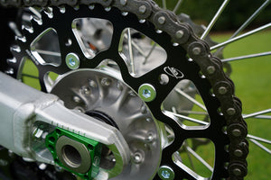 This AS3 Performance rear sprocket bolt kit comes as a pack of 6 bolts complete with locking nuts and washers. The bolts are a countersunk design with allen heads and are zinc plated to help resit wear and corrosion. These specific sprocket bolts are a common size for most off-road motorcycles. Always remember to check your rear sprocket bolts before riding.