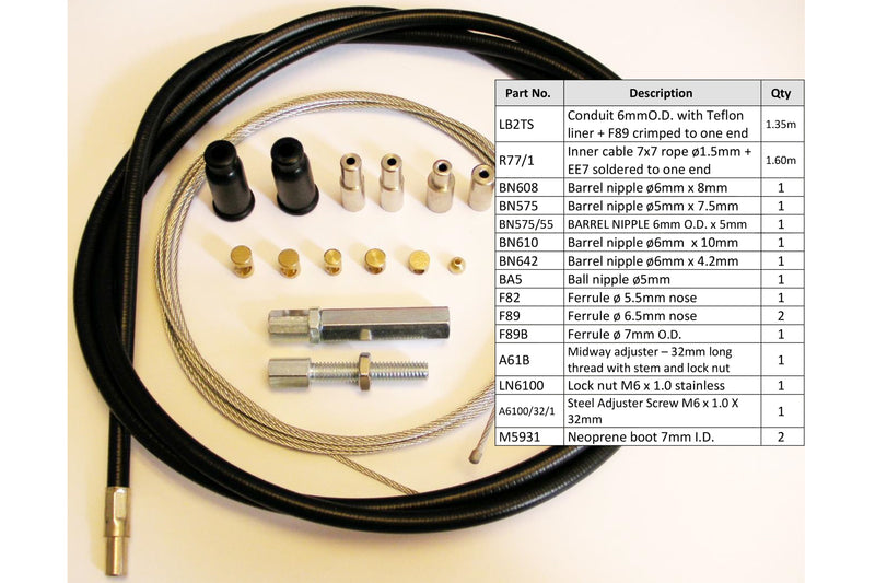 - 1.35 metre x 6mm OD outer conduit with 6mm OD stepped ferrule at one end