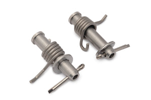AS3 Performance foot peg pins are machined from stainless steel to resist rust and corrosion, they come complete with springs and split pins as pictured and are direct replacements for the OEM foot peg pins.