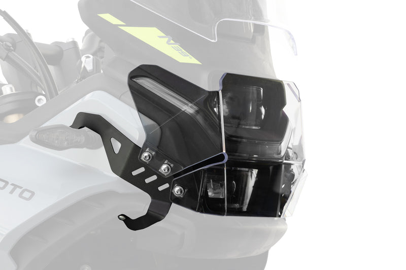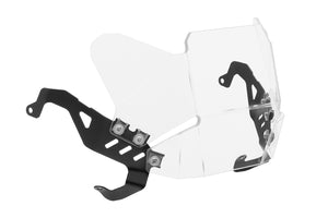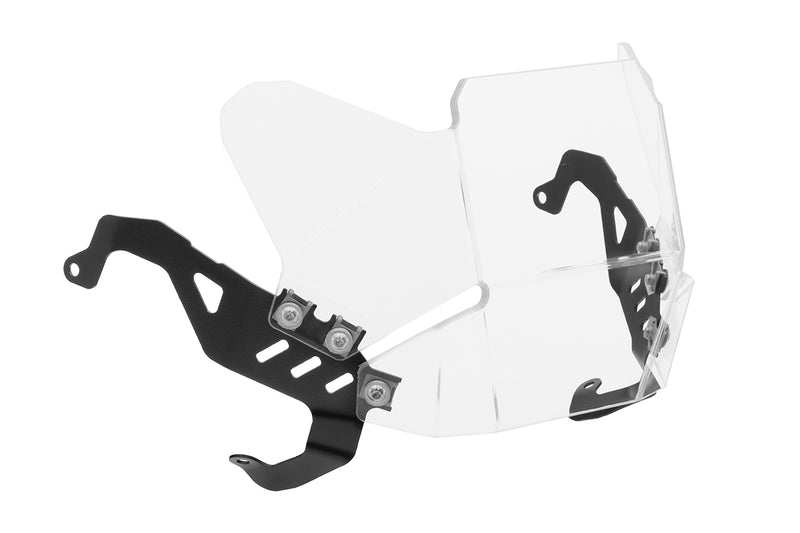 AS3 Performance headlight guard, constructed from 4mm clear polycarbonate plastic to provide the best protection possible to the headlight without affecting the brightness of the light. They are supplied with all bolts and brackets required for installation and instructions to help you mount it to the bike.