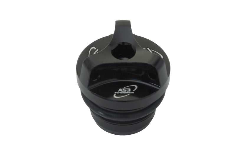 AS3 Performance oil filler plugs are manufactured from 6061 billet aluminium and are a stronger upgrade from the OEM plastic plugs. The head is designed to allow you to easily twist the cap on and off and has an allen key drive in the centre to fasten it tight. The corners of the head have pre-drilled holes for locking wire. The plug comes with a replacement o-ring and has a smooth anodised finish with AS3 Performance branding.