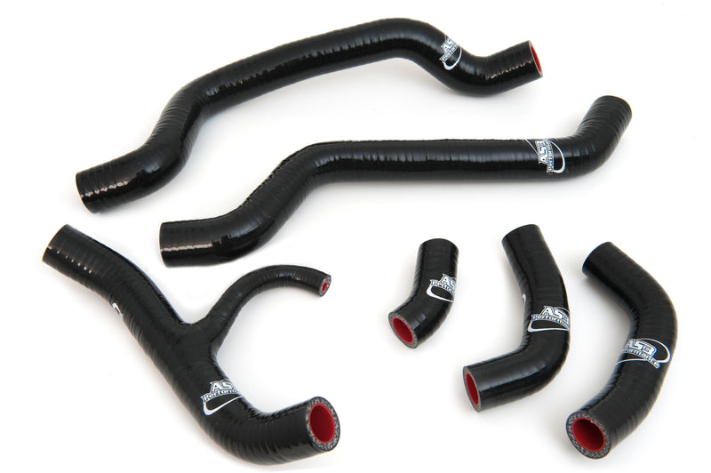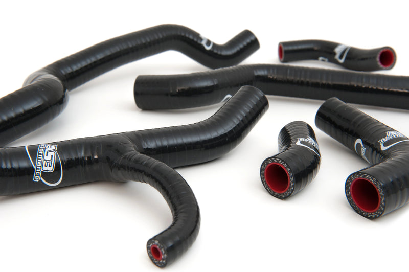 AS3 Performance silicone radiator hoses are manufactured from high quality silicone with a polyester reinforcement to make them strong, durable and less vulnerable to puncture or damage than the standard rubber hoses. Our silicone hose kits are used by many of our sponsored teams and riders in a variety of race conditions. The hoses come in a gloss finish with AS3 Performance branding.