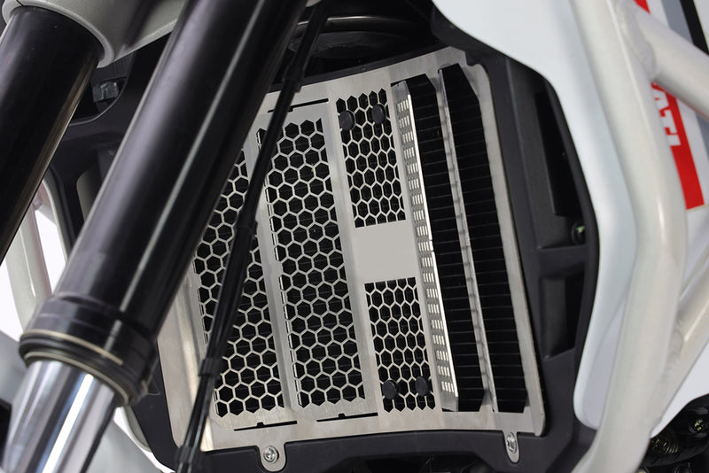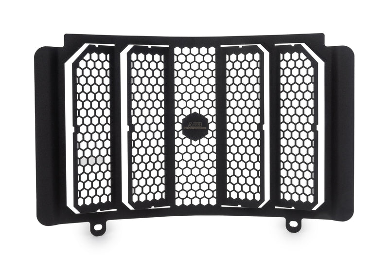 AS3 Performance radiator guards are manufactured from strong but lightweight 304 stainless steel and feature a laser cut honeycomb design to protect the radiator on your bike from stones and other debris which may cause damage, without adding any unnecessary weight. The radiator guards have a textured matt black finish with AS3 Performance branding.