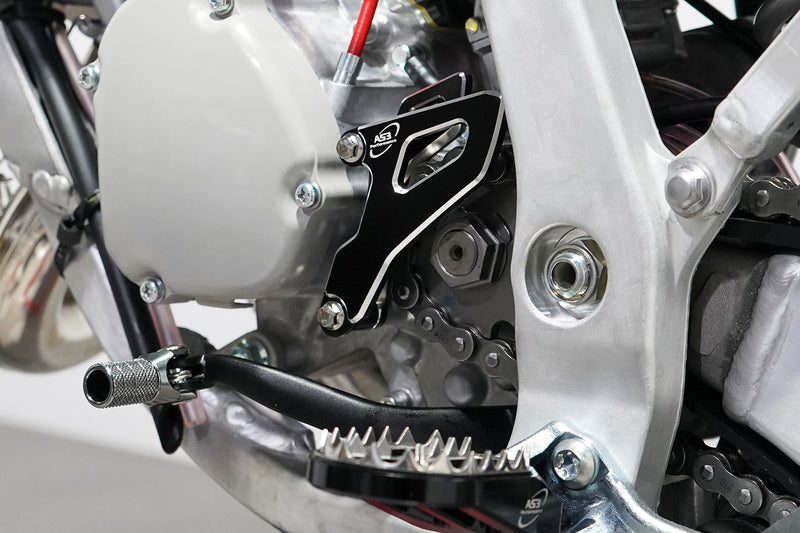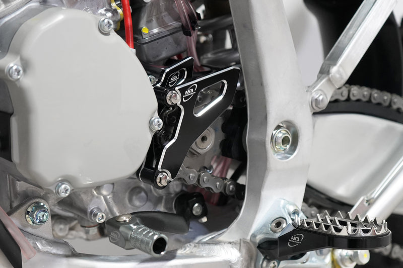 AS3 Performance front sprocket covers are CNC machined from strong and lightweight 7009-T6 aluminium making them much stronger and less vulnerable to damage than standard plastic sprocket guards. The sprocket guards will prevent mud and other debris from getting caught up in your chain and sprocket and look great anodised in black with AS3 Performance branding.