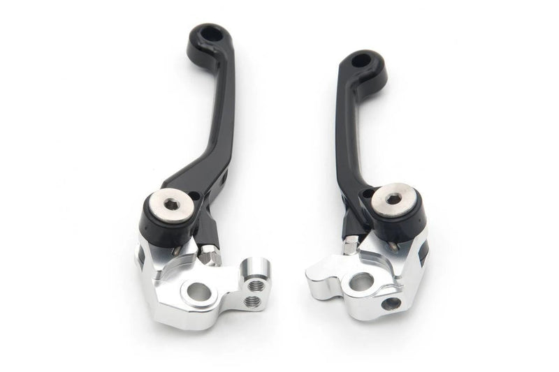 AS3 Performance flexible and adjustable front brake and clutch levers. Manufactured from high-strength aluminium, forged and then CNC machined to guarantee a long life service and a precise fit. The pivot design allows the levers to fold outwards on impact preventing them from breaking or bending. The levers are also have an adjustable reach allowing you to set them at a distance to suit the rider. Anodised in black with grey AS3 Performance logo for that factory look.