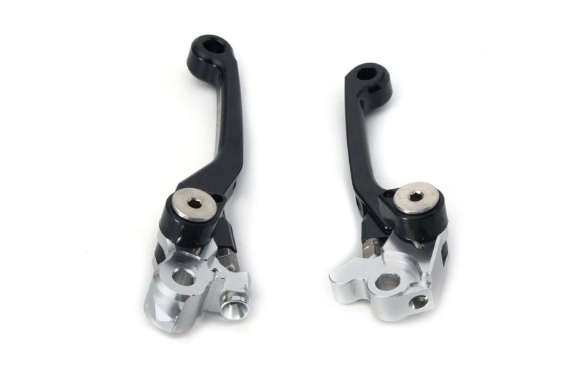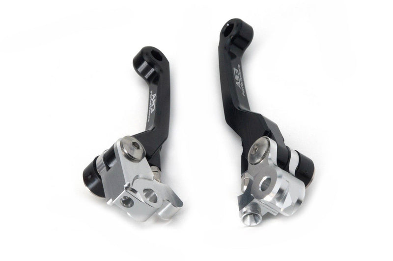 AS3 Performance flexible and adjustable front brake and clutch levers. Manufactured from high-strength aluminium, forged and then CNC machined to guarantee a long life service and a precise fit. The pivot design allows the levers to fold outwards on impact preventing them from breaking or bending. The levers are also have an adjustable reach allowing you to set them at a distance to suit the rider. Anodised in black with grey AS3 Performance logo for that factory look.