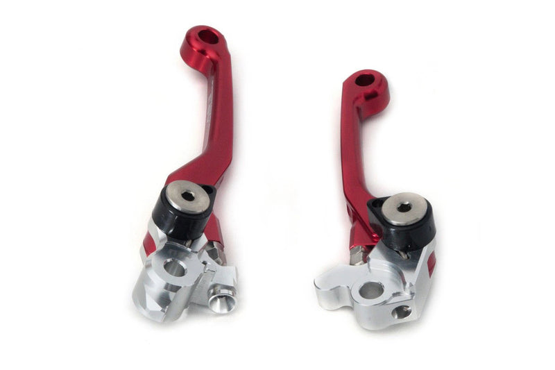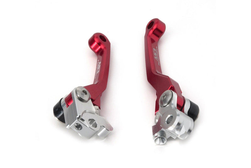 AS3 Performance flexible and adjustable front brake and clutch levers. Manufactured from high-strength aluminium, forged and then CNC machined to guarantee a long life service and a precise fit. The pivot design allows the levers to fold outwards on impact preventing them from breaking or bending. The levers are also have an adjustable reach allowing you to set them at a distance to suit the rider. Anodised in red with grey AS3 Performance logo for that factory look.