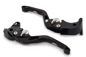 AS3 Performance adjustable front brake and clutch levers are available for a wide range of sports bikes, sports touring bikes and dual sport motorcycles. They are CNC machined from aircraft grade 6061 T6 aluminium and feature a short lever design to allow the rider to control the levers with either 2 or 3 fingers. The levers have 6 adjustable reach settings which can be easily set by using the silver adjuster. They come in a black anodised finish with AS3 Performance branding on the front of the levers.