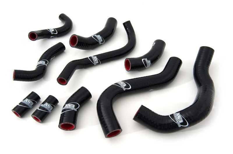 AS3 Performance silicone radiator hoses are manufactured from high quality silicone with a polyester reinforcement to make them strong, durable and less vulnerable to puncture or damage than the standard rubber hoses. Our silicone hose kits are used by many of our sponsored teams and riders in a variety of race conditions. The hoses come in a gloss finish with AS3 Performance branding.