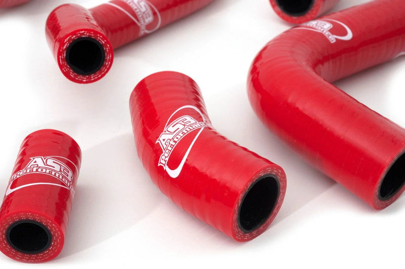 AS3 Performance silicone radiator hoses are manufactured from high quality silicone with a polyester reinforcement to make them strong, durable and less vulnerable to puncture or damage than the standard rubber hoses. Our silicone hose kits are used by many of our sponsored teams and riders in a variety of race conditions. The hoses come in a gloss finish with AS3 Performance branding.
