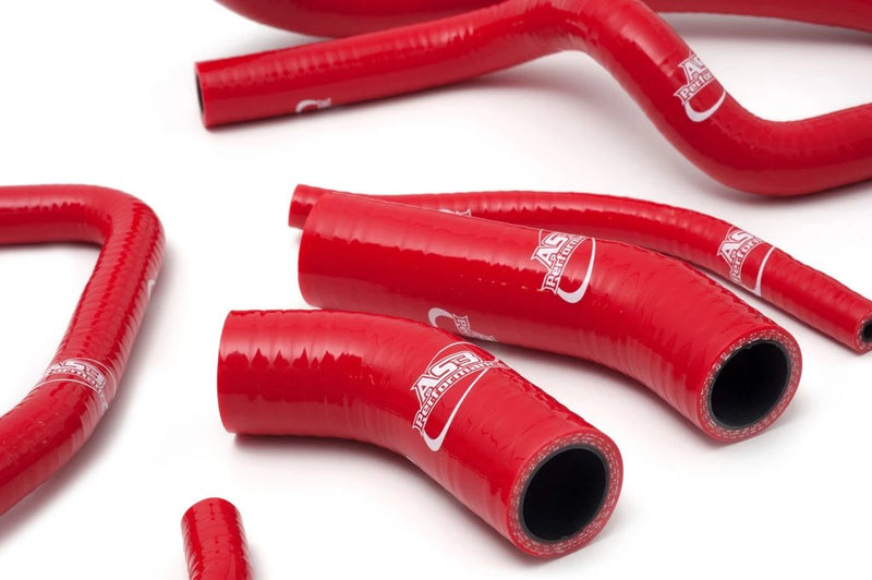 AS3 Performance silicone radiator hoses are manufactured from high quality silicone with a polyester reinforcement to make them strong, durable and less vulnerable to puncture or damage than the standard rubber hoses. Our silicone hose kits are used by many of our sponsored teams and riders in a variety of race conditions. The hoses come in a gloss finish with AS3 Performance branding.
