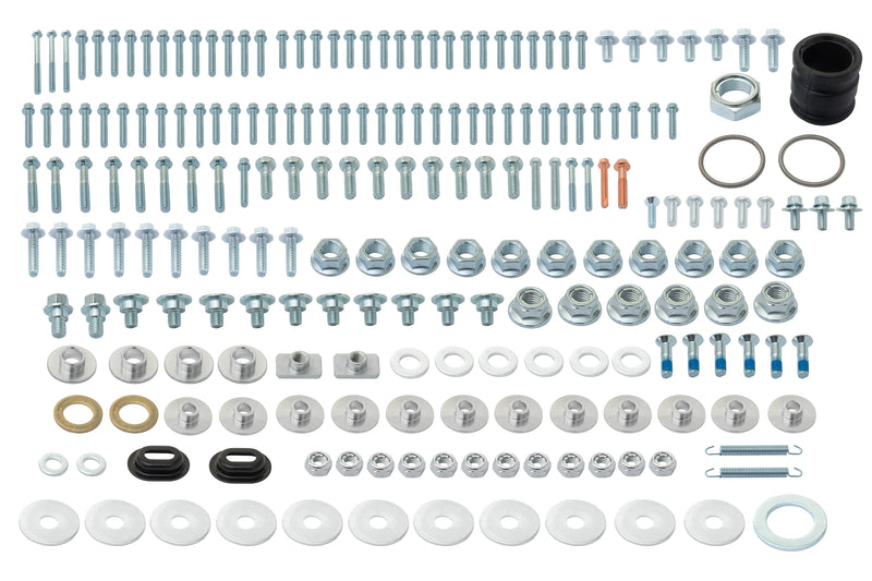 AS3 Performance Pro-Pack hardware kits are a selection of bolts, spacers and fixings for all the main areas of your bike and are ideal for replacing any lost or damaged bolts etc. The kit includes parts for the plastics, brakes, bar clamps, sub frame, sprocket, various engine cover bolts and many more. The parts in the picture are the exact parts you will receive and the kit is supplied in a plastic box with separate compartments.