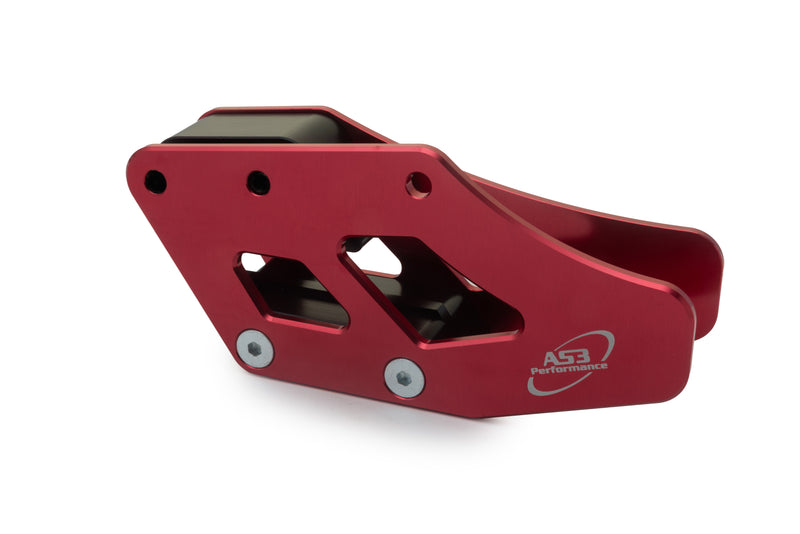 AS3 Performance aluminium chain guides are CNC machined from 6061-T6 aluminium for increased strength and durability. Featuring hard wearing plastic inserts, they will not bend or buckle like the OEM or plastic guides and will protect your chain in some of the toughest of riding conditions.