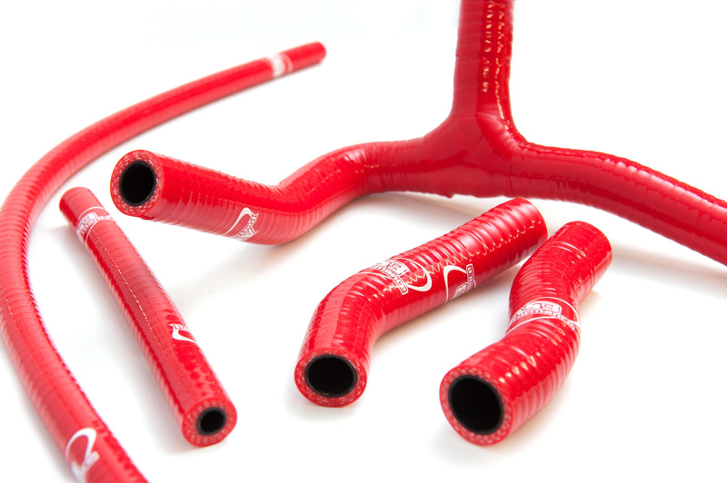 AS3 Performance silicone radiator hoses are manufactured from high quality silicone with a polyester reinforcement to make them strong, durable and less vulnerable to puncture or damage than the standard rubber hoses. Our silicone hose kits are used by many of our sponsored teams and riders in a variety of race conditions. The hoses come in a gloss finish with AS3 Performance branding.