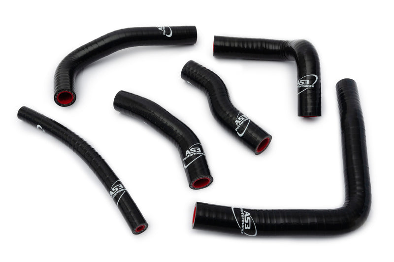 AS3 Performance silicone radiator hoses are manufactured from high quality silicone with a polyester reinforcement to make them strong, durable and less vulnerable to puncture or damage than the standard rubber hoses. Our silicone hose kits are used by many of our sponsored teams and riders in a variety of race conditions. The hoses come in a gloss finish with AS3 Performance branding.