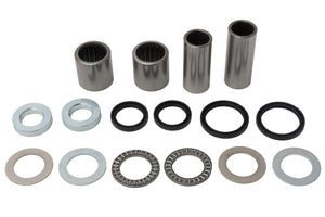 Over time the seals and bearings on the swing arm of a motocross or enduro bike can become worn and fail. Our swing arm bearing kits are supplied with all parts required to restore and repair the swing arm to perfect working order. The kit that you receive will include the exact components shown in the picture.