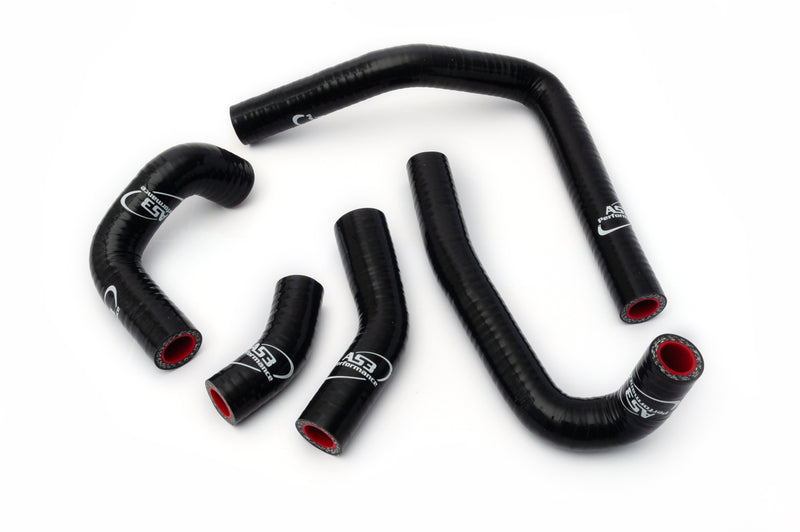 AS3 Performance silicone radiator hoses are manufactured from high quality silicone with a polyester reinforcement to make them strong, durable and less vulnerable to puncture or damage than the standard rubber hoses. Our silicone hose kits are used by many of our sponsored teams and riders in a variety of race conditions. The hoses come in a gloss finish with AS3 Performance branding.