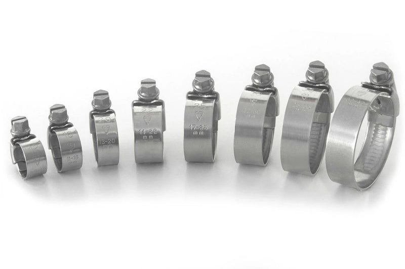 AS3 Performance/JCS Hi-Torque Hi-Grip stainless steel hose clips are the best clips on the market by far and have become the industry standard for motorsport applications throughout the world due to their high quality and performance. Made entirely from 18/8 marine quality stainless steel they are strong and ideal for corrosive environments. The clips have banded edges and extremely smooth inners giving the best possible protection to the hose and with a clean polished finish they are the most factory looking clips on the market.