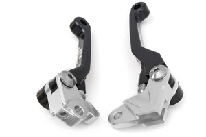 AS3 Performance flexible and adjustable front brake and clutch levers are manufactured from high-strength aluminium, forged and then CNC machined to guarantee a long life service and a precise fit. The pivot design allows the levers to fold outwards on impact preventing them from breaking or bending. The levers are also have an adjustable reach allowing you to set them at a distance to suit the rider. Anodised in black with grey AS3 Performance logo for that factory look.