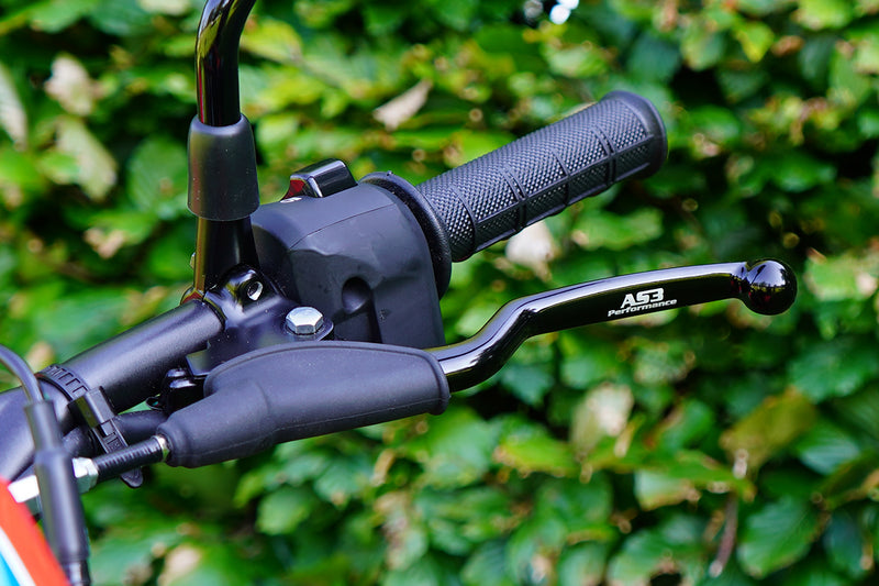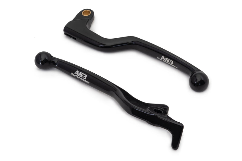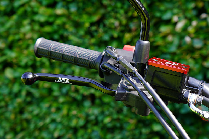 AS3 Performance front brake and clutch levers are direct replacements for the OEM levers. They are also cold forged which allows the levers to bend (if hit hard) rather than snapping like most OEM cast levers would. The levers are anodised in black and feature AS3 Performance branding.