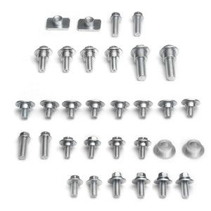 AS3 Performance plastics fastener kits are a complete set of bolts and spacers etc for all the plastic bodywork on the bike including the radiator shrouds, front and rear fenders, side panels, front number board, seat and fork guards. The parts in the picture are the exact parts you will receive and the kit is supplied in a small blister pack that can easily fit in a bag or tool box.