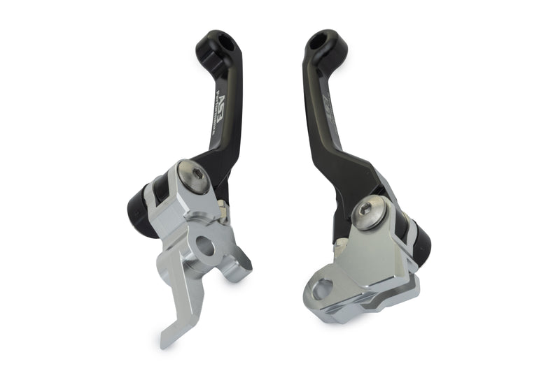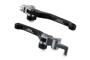 AS3 Performance flexible and adjustable front brake and clutch levers. Manufactured from high-strength aluminium, forged and CNC machined to guarantee a long life service and a precise fit. The pivot design allows the levers to fold outwards on impact preventing them from breaking or bending. The levers are also have an adjustable reach allowing you to set them at a distance to suit the rider.