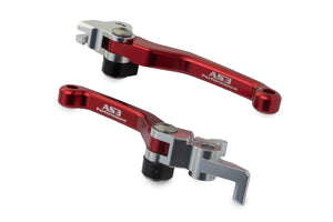AS3 Performance flexible and adjustable front brake and clutch levers. Manufactured from high-strength aluminium, forged and CNC machined to guarantee a long life service and a precise fit. The pivot design allows the levers to fold outwards on impact preventing them from breaking or bending. The levers are also have an adjustable reach allowing you to set them at a distance to suit the rider.