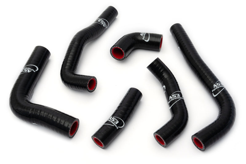 AS3 Performance silicone radiator hoses are manufactured from high quality silicone with a polyester reinforcement to make them strong, durable and less vulnerable to puncture or damage than the standard rubber hoses. Our silicone hose kits are used by many of our sponsored teams and riders in a variety of race conditions. The hoses come in a gloss finish with AS3 Performance branding.