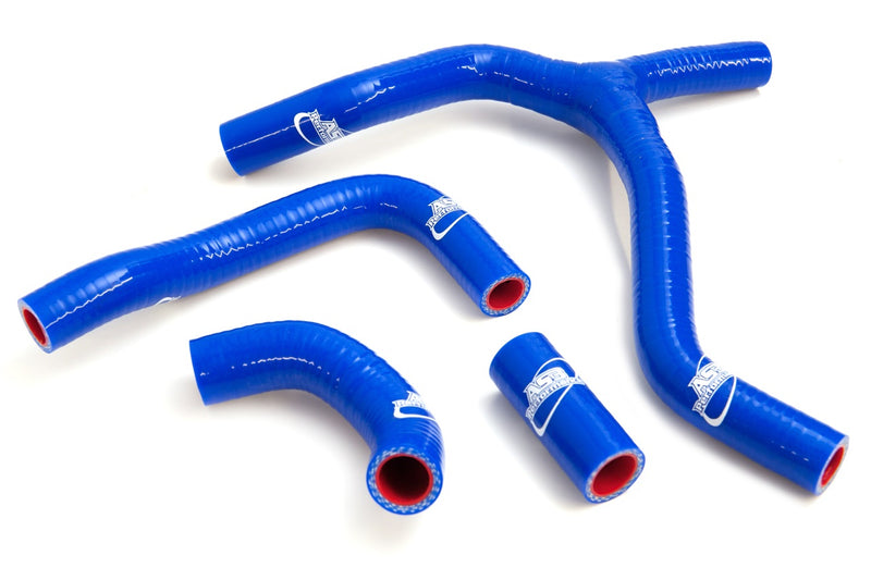AS3 Performance silicone radiator hoses are manufactured from high quality silicone with a polyester reinforcement to make them strong, durable and less vulnerable to puncture or damage than the standard rubber hoses. Our silicone hose kits are used by many of our sponsored teams and riders in a variety of race conditions. The hoses come in a gloss finish with AS3 Performance branding.