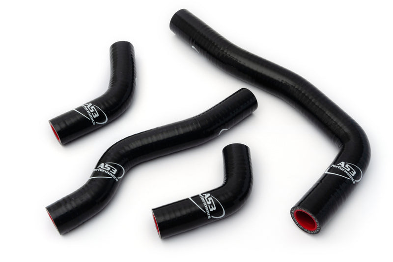 AS3 Performance silicone radiator hoses are manufactured from high quality silicone with a polyester reinforcement to make them strong, durable and less vulnerable to puncture or damage than the standard rubber hoses. Our silicone hose kits are used by many of our sponsored teams and riders in a variety of race conditions. The hoses come in a gloss finish with AS3 Performance branding.
