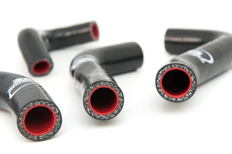 AS3 Performance silicone radiator hoses are manufactured from high quality silicone with a polyester reinforcement to make them strong, durable and less vulnerable to puncture or damage than the standard rubber hoses. Our silicone hose kits are used by many of our sponsored teams and riders in a variety of race conditions. The hoses come in a gloss finish with AS3 Performance branding.