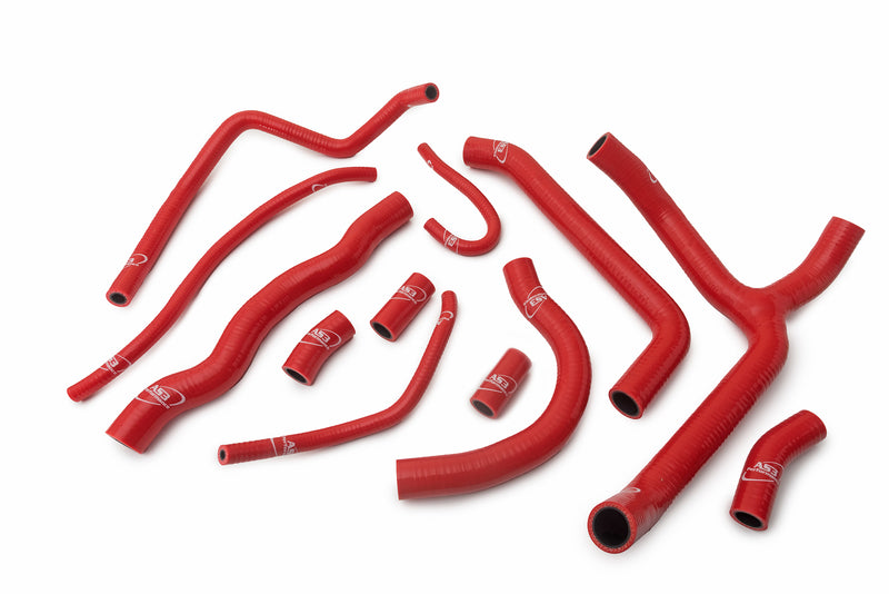 AS3 Performance silicone radiator hoses are manufactured from high quality silicone with a polyester reinforcement to make them strong, durable and less vulnerable to puncture or damage than the standard rubber hoses. Our silicone hose kits are used by many of our sponsored teams and riders in a variety of race conditions. The hoses come in a gloss finish with AS3 Performance branding.