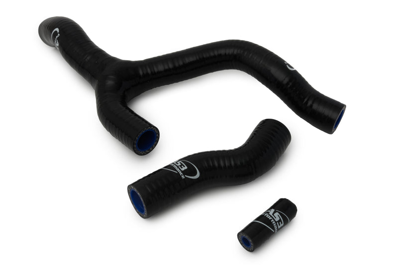 AS3 Performance silicone radiator hoses are manufactured from high quality silicone with a polyester reinforcement to make them strong, durable and less vulnerable to puncture or damage than the standard rubber hoses. Our silicone hose kits are used by many of our sponsored teams and riders in a variety of race conditions. The hoses come in a gloss finish with AS3 Performance branding.